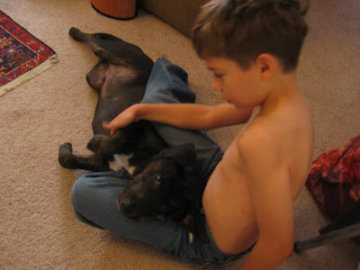 Just a quick post that all is well. Unlike the first day of school last year there were no tears and no phone calls. Theron comes home happy every day. He's making friends. He's taking care of his dog. Fred the Ferocious Fish is making a bubble nest at the top of the tank for eggs that are not going to ever come. His tank mate George the african dwarf frog must be finding food even though we never see him eat because he's still hanging around. Oliver is learning and learning and giving us lots of doggy kisses. Our cups overfloweth with love and blessings. We know we're lucky.